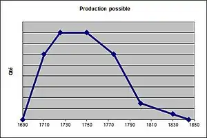 - 1780: Ralentización de la producción a Sin de relojes de agua, según Tarbé al Almanach de 1833.