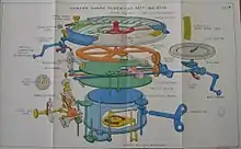 La velocidad variable se obtuvo utilizando un disco de metal giratorio que accionaba una rueda de goma que descansaba sobre ella. La posición de la rueda podía ser movida dentro y fuera a lo largo del radio del disco, de modo que la rueda giraba a velocidades diferentes (más rápido más hacia fuera). Los errores de operación ocurrían al ajustar la rueda, ya que esta tendía a deslizarse cuando era arrastrada a través de la cara del disco giratorio mientras era ajustada. La solución adoptada fue ajustar la velocidad rápidamente y en montos pequeños, aceptando que los rangos generados se desviarían moderadamente de las curvas hiperbólicas continuas en uso. En 1909, se hicieron modificaciones en el mecanismo del reloj para mejorar la fiabilidad de la velocidad y aumentar la potencia del accionamiento.[5]