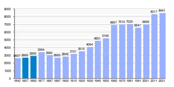 | Gráfica de evolución demográfica de Reocín[1] entre 1842 y 2021 |