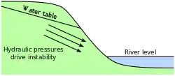 Mientras que la presa se llena, se eleva el nivel de las aguas subterráneas circundantes. El fracaso de la presa puede desencadenar otras procesos catastróficos. El nivel de agua desciende rápidamente, la presión hidráulica de las aguas subterráneas no compensada puede iniciar deslizamientos adicionales. Aquellos que caen en el embalse pueden provocar aún más catastróficos derrames. Por otra parte, la inundación resultante puede socavar los lados del valle del río para producir más deslizamientos de tierras aguas abajo.[2]