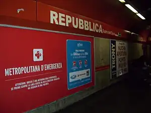 La estación Repubblica fue construida como parte del primer tramo (de Ottaviano a Anagnina) de la línea A del metro,[1] entrando en servicio el 16 de febrero de 1980.[2] Durante los trabajos de construcción de la estación, fueron encontrados restos arqueológicos que requirieron modificar el plan original. Las ruinas se encuentran actualmente visibles en la estación, protegidas por vitrinas.