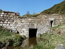 La madera se lanzaba a un estanque, construido en un principio de madera, algo provisional, ante la sorpresa de que en la época estival el cauce estaba seco, contratiempo no observado por Mücha, por lo que posteriormente se haría de manera más sólida con mampostería. Ante la insuficiencia de agua, que persistían en ciertas épocas se instauraron otras presas cauce arriba, una de ellas con puerta de guillotina y muros muy anchos. Este problema persistiría, que además de construir represas río arriba, también se tuvieron que plantear la creación de estas río abajo como es el caso en el arroyo de Vernaya en las Corcadillas, obra mucho mayor que las anteriores. Además de la creación de presas, se modificó el cauce en varias ocasiones, canalizando el cauce y modificando los márgenes del río, tanto por ensanchamiento como por estrechamiento.