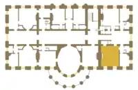 La Sala Oval Amarilla se utiliza también para pequeñas recepciones y saludo a los jefes de Estado antes de una Cena de Estado. Tres grandes ventanales en el lado sur dan vista al Elipse de Washington D. C.. Hay dos puertas en el lado oeste de la Sala, con una bandera americana y la bandera Presidencial a uno y otro lado, donde se encuentra el Pasillo Central del segundo Piso.
