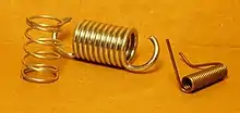 - Muelle en V: utilizado en mecanismos de armas de fuego antiguas, como la llave de rueda. También utilizado en los pestillos de puerta tradicionales más simples.[13]