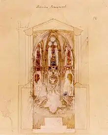 - El conjunto de ángeles, vírgenes, apóstoles, mártires, profetas y patriarcas (capilla Real) representaría a la Iglesia militante, mientras que la Trinidad (capilla de la Santísima Trinidad) simbolizaría la Iglesia triunfante.[60]
