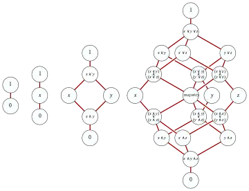 - Dado un entero positivo n, el conjunto de todos los divisores positivos de n, con el máximo común divisor y el mínimo común múltiplo como meet y join, respectivamente. Esta es un álgebra booleana sí y sólo si n es un entero libre de cuadrados.