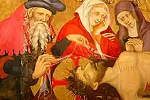 En esta restauración se eliminaron las tablas que se habían añadido en el siglo XIX, se recuperaron las dos tablas de los extremos de la predela original y, para ocupar el espacio central vacío, se optó por una tabla alargada obra de Lluis Borrassà. Esta pieza sólo es catorce años más moderna que el retablo original y su temática encaja dentro del relato iconográfico del retablo. Representa el Lamento sobre Cristo muerto y contrasta con el resto del retablo porque muestra un gran dramatismo. La escena del entierro presenta la cara deformada por el dolor de Cristo muerto y la tristeza de quienes lo velan.[8]