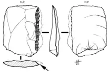 - Izquierdo: retoque en el borde izquierdo de la lasca.
