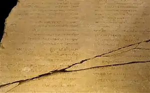 El texto en su conjunto es desconocido por otras fuentes;[6] es fragmentario, por lo que el significado es bastante incierto.[16][17][18] Se considera muy similar a los Manuscritos del Mar Muerto.[10] El objeto es relativamente raro por el uso de tinta en piedra.[5][10][19]
