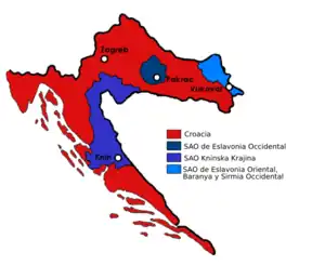 El 21 de diciembre de 1990, los municipios de Knin, Benkovac, Vojnić, Obrovac, Gračac, Dvor y Kostajnica aprobaron el "Estatuto de la Región Autónoma Serbia de Krajina ".[15]