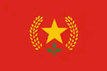 Bandera del Frente Popular Revolucionario de Manipur, de color rojo, con el emblema en el centro.