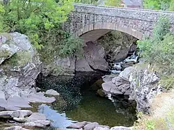 A pocos metros de la confluencia del Guares con el Híjar, la antigua calzada salva este último mediante un hermoso puente de piedra, catalogado como bien de interés cultural con el código (A.R.I.) 51-0009009-00000. Aunque conocido popularmente como "puente romano", es en realidad de factura tardomedieval o posiblemente del siglo XVI.