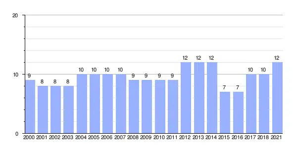 | Gráfica de evolución demográfica de Ribadiso entre 2000 y 2021 |