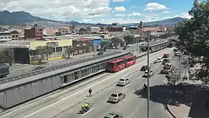 La estación de transferencia Ricaurte hace parte del sistema de transporte masivo de Bogotá llamado TransMilenio inaugurado en el año 2000.