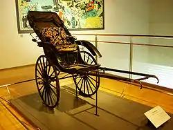 En China, desde la antigüedad y hasta el siglo XIX, las personas ricas e importantes, cuando viajaban por tierra, eran comúnmente transportadas en literas llevadas por portadores, en lugar de en vehículos de ruedas. lo que se debe, al menos en parte, por las condiciones de las carreteras.[13] [14] Se piensa que estas literas (o "palanquines") fueron introducidos en Europa occidental desde China (o Asia Oriental en general) en el siglo XVII. [15] Sin embargo también había, los carros de ruedas para uno o dos pasajeros, empujados (en lugar de tirado, como un rikshaw) por un sirviente [16]