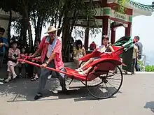 Un rickshaw con tracción humana (o ricksha) es un modo de transporte con propulsión humana en el cual una persona empuja un carro de dos ruedas con capacidad para una o dos personas.
