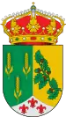 Escudo partido. 1.º de sinople, tres espigas de centeno de oro. 2.º de oro, un ramo de roble de sinople, frutado, puesto en banda. Entado en punta de plata, tres lises de gules puestas una y dos. Al timbre corona real cerrada.