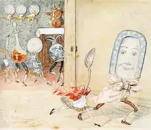 | "Sing a Song of Sixpence" | Disolución de los monasterios por Enrique VIII, con Catalina de Aragón representando a la reina y Ana Bolena a la doncella. | c. 1744 (Gran Bretaña) | Desconocido; todas las identificaciones son especulativas.[34] |