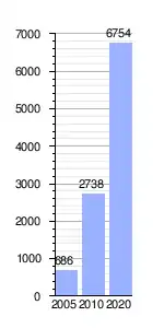 | Gráfica de evolución demográfica de Rinconada de los Ángeles entre 2005 y 2020 |