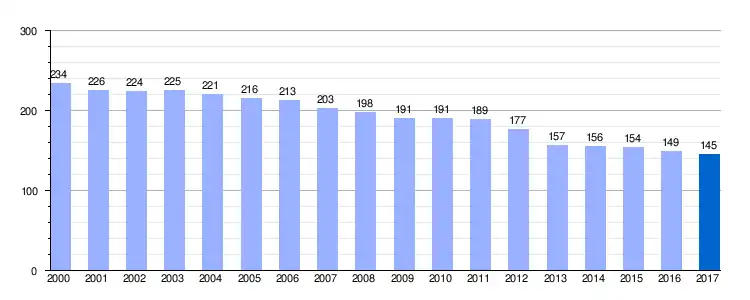 | Gráfica de evolución demográfica de Riofrío entre 2000 y 2017 |