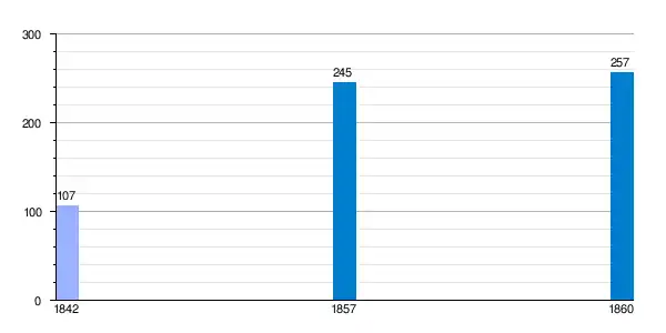 | Gráfica de evolución demográfica de Rioseco[2] entre 1842 y 1860 |