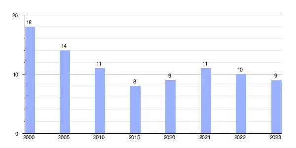 | Gráfica de evolución demográfica de Riosequillo[3] entre 2000 y 2023 |
