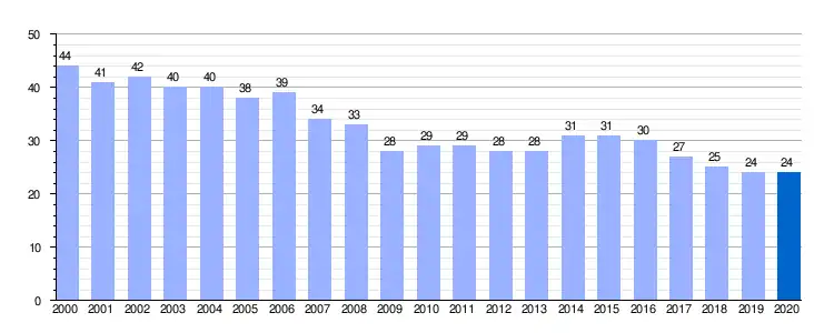 | Gráfica de evolución demográfica de Riosmenudos de la Peña entre 2000 y 2020 |