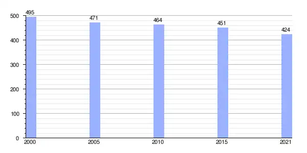 | Gráfica de evolución demográfica de Riotorto entre 2000 y 2021 |
