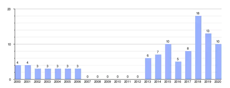 | Gráfica de evolución demográfica de Riotuerto entre 2000 y 2020 |