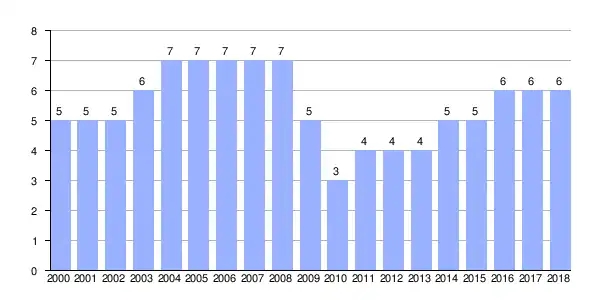 | Gráfica de evolución demográfica de Rivadevila entre 2000 y 2018 |