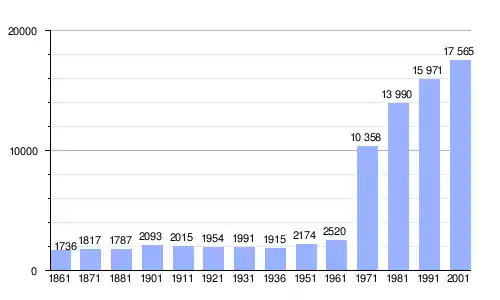 | Gráfica de evolución demográfica de Rivalta di Torino entre 1861 y 2001 |