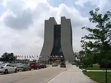 El sitio también tenía estanques y un edificio principal que recordaba deliberadamente a la Catedral de Beauvais.[28] Fermilab también celebra su papel como lugar para el arte, presentando varias obras, incluidas "La cinta de Mobius", "El obelisco hiperbólico", "Tractricious" y "Broken Symmetry". Otra escultura de metal "Topológica III" se encuentra en el vestíbulo del Centro de Ciencias de Harvard.[29] El edificio del Laboratorio Central de Fermilab fue nombrado Robert Rathbun Wilson Hall en su honor en 1980.[30]