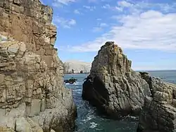 ![]() Rocas de Constitución, con la Piedra de la Iglesia al fondo. | ||