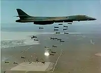 El Rockwell B-1 Lancer[N 1] es un bombardero estratégico cuatrimotor con ala de geometría variable, usado por la Fuerza Aérea de los Estados Unidos (USAF) desde 1986. Concebido inicialmente en los años 60 como un bombardero supersónico con suficiente alcance y capacidad de carga como para reemplazar al Boeing B-52 Stratofortress, finalmente en los años 1980 se desarrolló principalmente para realizar incursiones a baja cota, con largo alcance y capacidad de vuelo supersónico a gran altitud.