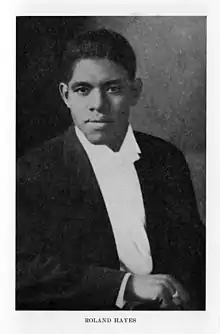 Roland Wiltse Hayes (3 de junio de 1887- 1 de enero de 1977) fue un tenor y compositor lírico afroestadounidense. Los críticos elogiaron sus habilidades y versatilidad lingüística demostradas con canciones en francés, alemán e italiano. No tuvieron en cuenta a los predecesores de Hayes como conocidos concertistas afroamericanos, incluidas Sissieretta Jones y Marie Selika. Junto con Marian Anderson y Paul Robeson, Hayes fue uno de los primeros en romper una barrera en el repertorio clásico cuando en 1939 grabó con Columbia.[2]