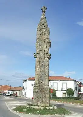 Este rollo de estilo tardogótico tiene el escudo de los Reyes Católicos y se encuentra rematado por un pináculo con una cruz en forma de flor de lis.[1] Desde su construcción, en 1497, ha estado sujeto a numerosos cambios de ubicación dentro de la ciudad de Trujillo.[1]