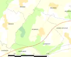 - Situación de Romange en un mapa de Francia y de comunas limítrofes (enlace roto disponible en Internet Archive; véase el historial, la primera versión y la última). (en francés)