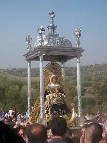 Es una jornada festiva desde el amanecer hasta caer la noche que coincide con la feria del pueblo. Comienza a media mañana cuando las autoridades civiles y religiosas junto al Hermano Mayor parten del pueblo por el camino conocido como "del Prado". Al llegar al santuario, el alcalde le coloca el bastón de alcaldesa-honoraria y es llevada hasta el exterior por sus devotos. Junto a la ermita, se oficia una misa en un gran altar de campaña seguida por cientos de fieles. Al terminar dicho acto religioso, la imagen es llevada a hombros acompañada de los acordes de la banda de música y de oraciones y plegarias por decenas de portadores por los alrededores de la ermita. Cuando termina la procesión, son varios los coros romeros y agrupaciones musicales que se acercan a cantarle junto a sus andas de plata. El momento más emotivo se vive cuando las decenas de portadores y portadoras anónimos que la mecen durante la procesión, la elevan por encima de sus cabezas haciendo un esfuerzo sobrehumano para que toda la muchedumbre la contemple y todo el verde paraje la observe vestida con un manto de casi 200 kilos bordado en oro y joyas. Durante los días previos a la romería, se celebra una novena en la Parroquia de San Sebastián del pueblo como espera emocionante al día grande de la fe mariana de Los Pedroches.