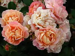 R. 'Cubana' híbrido conseguida por cruce de semillas de 'Immensee' (Kordes 1982) x 'Spek's Centennial'. Obtención conseguida por W. Kordes & Sons, Alemania, 2001. | |