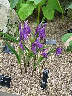 En su hábitat natural, florece entre abril y junio. El pedúnculo de vara de la flor puede se ocultó o sobresaltado por las vainas de las hojas. Una a tres flores se abren juntas, y pueden tener diferentes colores como el morado, violeta o blanco. Las brácteas que subtienden flores tienen de 4 a 6,5 centímetros de longitud.[2]