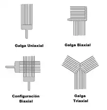 Para estados biaxiales de esfuerzos (muy común en el uso de Galgas Extensiométricas), una roseta de dos o tres elementos puede ser utilizada para determinar los esfuerzos principales que allí se presenten.