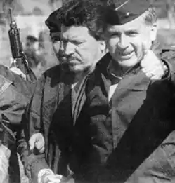 ![]() El General Rosso José Serrano escoltando personalmente al narcotraficante Miguel Rodríguez Orejuela tras su captura. | ||