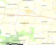 - Situación de Rougemontiers en un mapa de Francia y de comunas limítrofes (en francés)