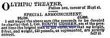 - «Barnum's American Museum». New York, New York. 26 de noviembre de 1863.
