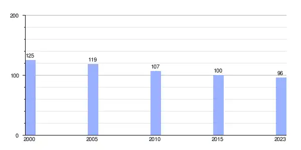 | Gráfica de evolución demográfica de Rubiás (parroquia) entre 2000 y 2023 |