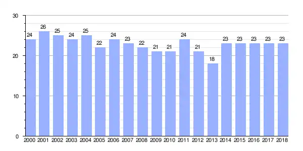 | Gráfica de evolución demográfica de Rubial entre 2000 y 2018 |