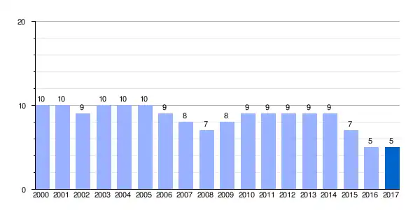 | Gráfica de evolución demográfica de Rufrancos entre 2000 y 2017 |