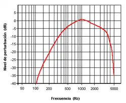 En la Figura 1 se representa la curva de ponderación de ruido, basada en pruebas auditivas, con indicación de la interferencia relativa del ruido a distintas frecuencias.
