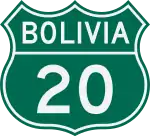 La Ruta Nacional 20 es una carretera boliviana perteneciente a la Red Vial Fundamental. La Ruta 20 ha sido declarada parte de la Red Vial Nacional de Bolivia " Fundamental Red Vial " por Ley 2187 del 10 de abril de 2001.[1]