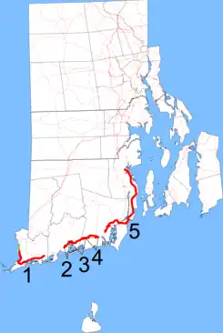 ![]() Mapa de la Ruta de Rhode Island 1A | |||||||||